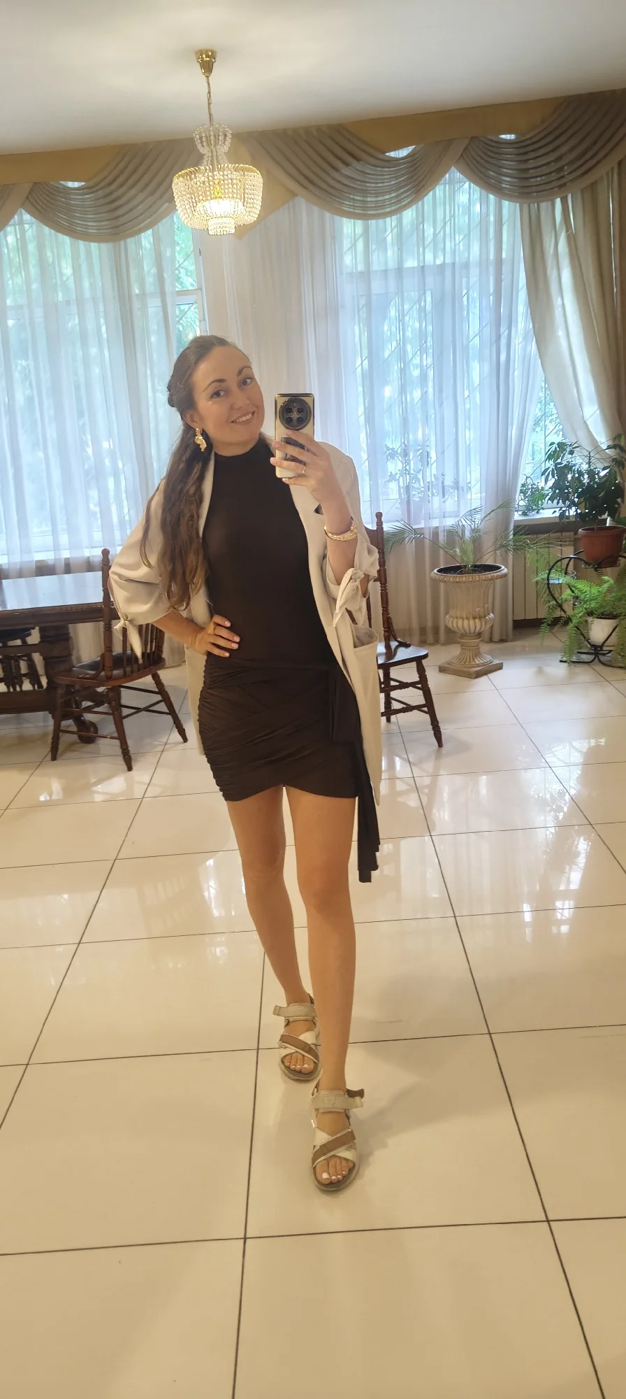 The dress is wonderful, it looks just like in the photos, making the body appear more slender. Order now, girl!!